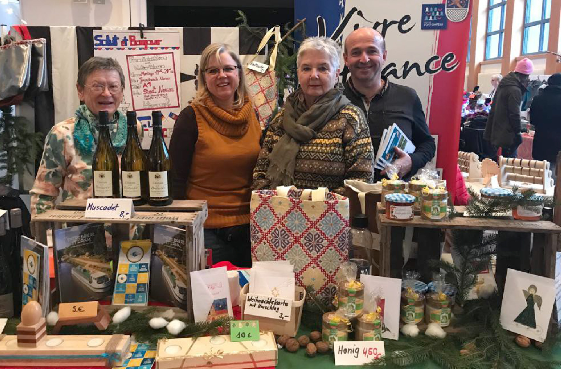 Wir freuen uns auf Ihren Besuch am Stand auf dem Schlosshof – auf eine schöne Vorweihnachtszeit und ein herzliches „Bienvenue“ an unsere Freunde aus Pont-Château!