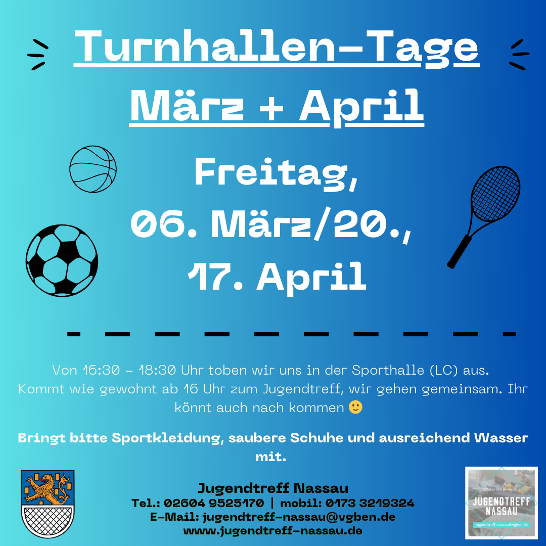 Kontakt:Jugendtreff Nassau Tel.: 02604 9525170 |
