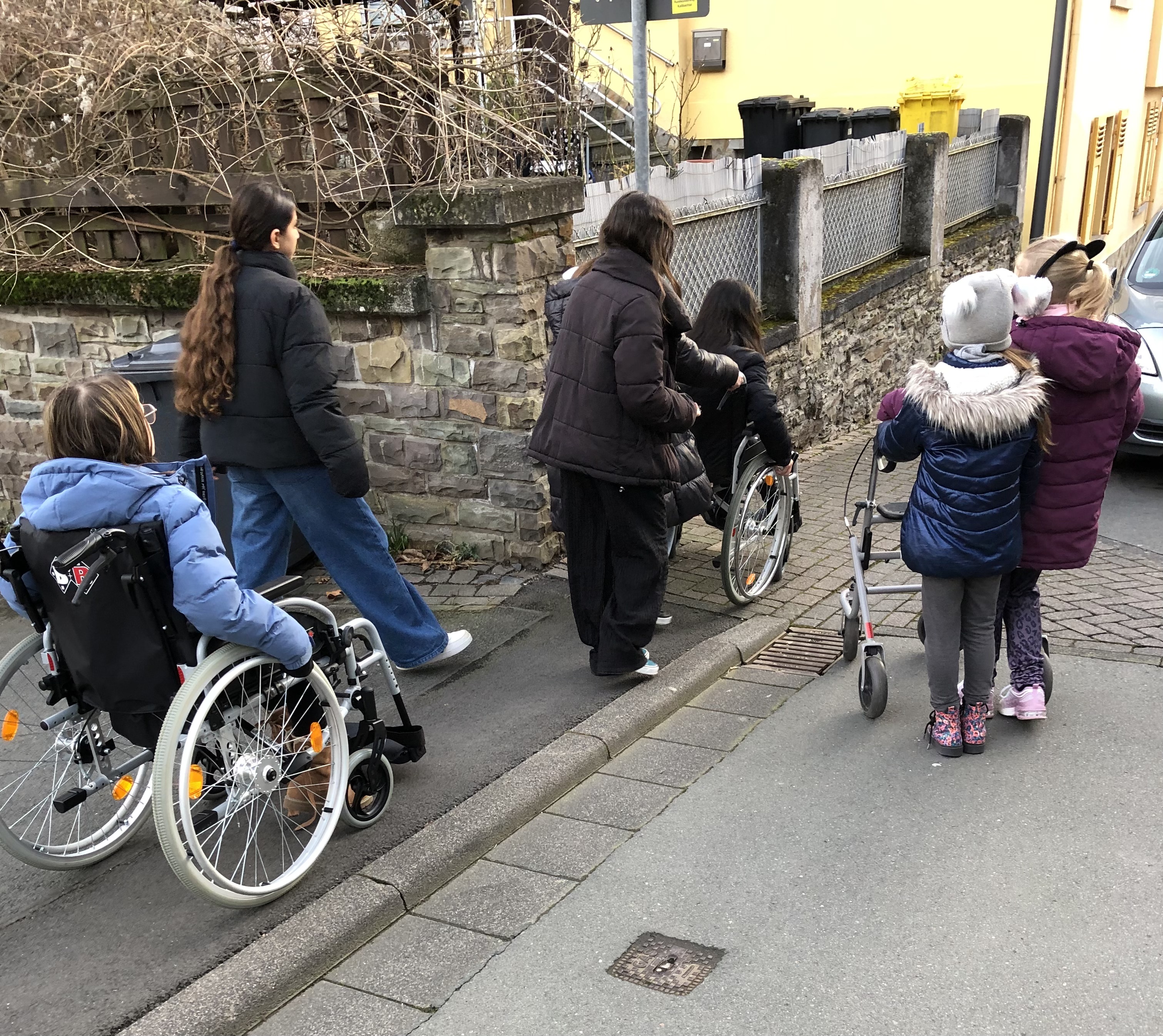 Um die Kinder und Jugendlichen für die Herausforderungen und Bedürfnisse von Menschen mit Behinderungen zu sensibilisieren, führte der Jugendtreff am 29. Januar einen Rollenspiel-Workshop durch. Ziel der Aktion war es, zu fühlen, wie es Menschen geht, die auf einen Rollstuhl angewiesen sind. Die Aufgabe für die Kinder bestand darin, vom Jugendtreff zum nächsten Supermarkt zu fahren und dort einzukaufen. Die erste Hürde musste schon im Jugendtreff gemeistert werden, denn der ist nur über Treppen zugänglich. Weitere Hindernisse stellten auch die (abgesenkten) Bordsteinkanten bei der Straßenüberquerung dar. Und wie sollte man an das Glas Tomatensoße im oberen Regal kommen? Mit zunehmender Übung entwickelten die Teilnehmenden ein Gefühl für den Umgang mit dem Rollstuhl, sodass die Route bis zum Bahnhof ausgeweitet wurde. Dort erfuhren sie, wie der „Einstieg“ in einen Zug funktioniert – dank der freundlichen Unterstützung eines sehr hilfsbereiten Zugführers. Nach diesem anstrengenden und erlebnisreichen Ausflug, gab es zur Belohnung Nudeln mit Tomatensauce, die die Kinder unterwegs eingekauft hatten. Am Ende waren sich alle einig – diese Erfahrung war wertvoll und hat den Blick für die alltäglichen Herausforderungen von Rollstuhlfahrenden geschärft. Gleichzeitig wurde vielen bewusst, wie wichtig Barrierefreiheit ist.