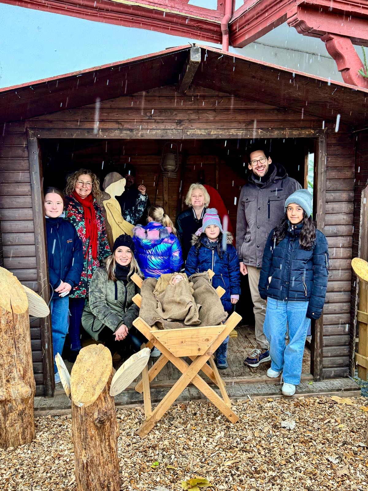 Maria und Josef lassen Weihnachtskrippe vor dem Nassauer Rathaus in neuem Glanz erstrahlen