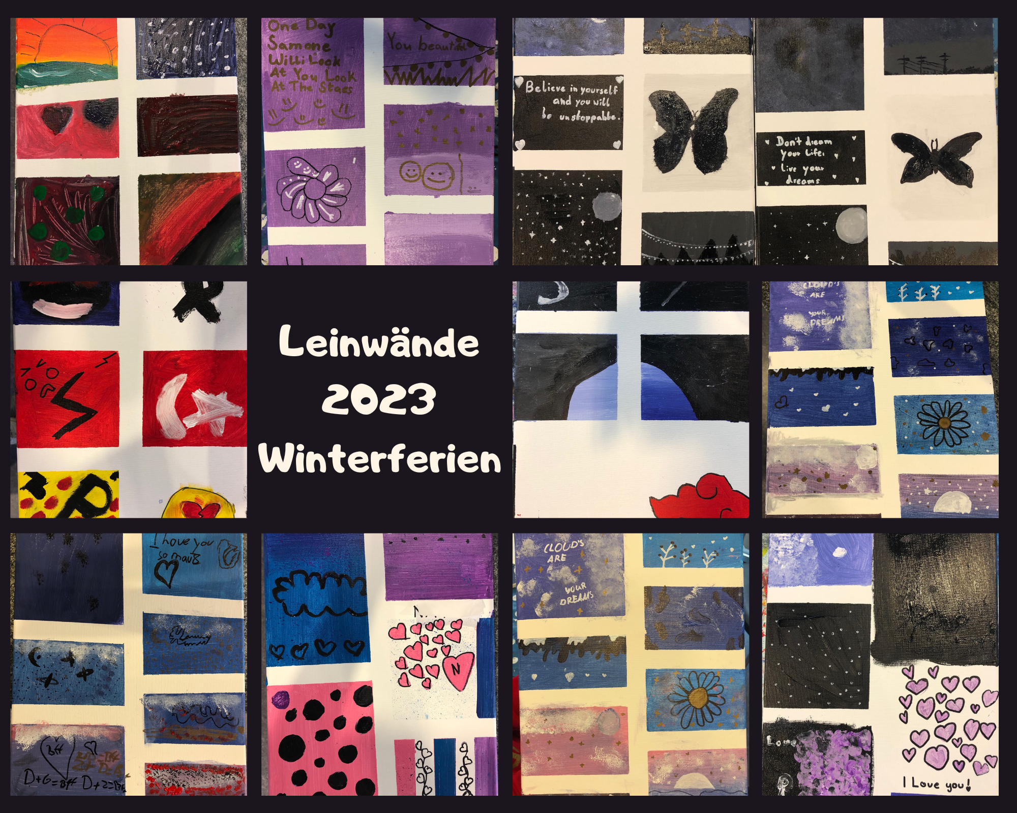 Am darauffolgenden Tag wurde es wieder bunt. Dieses Mal allerdings mit Acrylfarbe. Elisa Di Canio vom „Atelier Kunstglück“ leitete die Kinder beim Bemalen von Leinwänden an und brachte unterschiedliche Motive und Techniken mit. So konnte sich jedes Kind individuell kreativ austoben. Die fertigen Kunstwerke sorgten für Begeisterung!