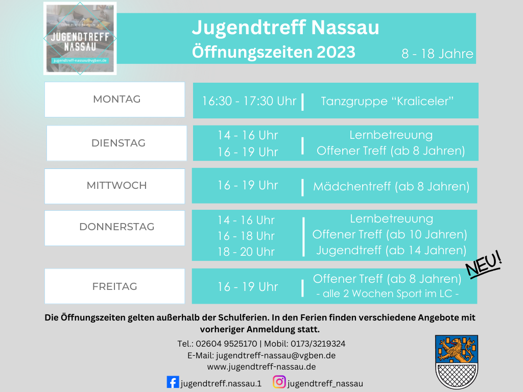 Kontakt:Jugendtreff Nassau Tel.: 02604 9525170 |