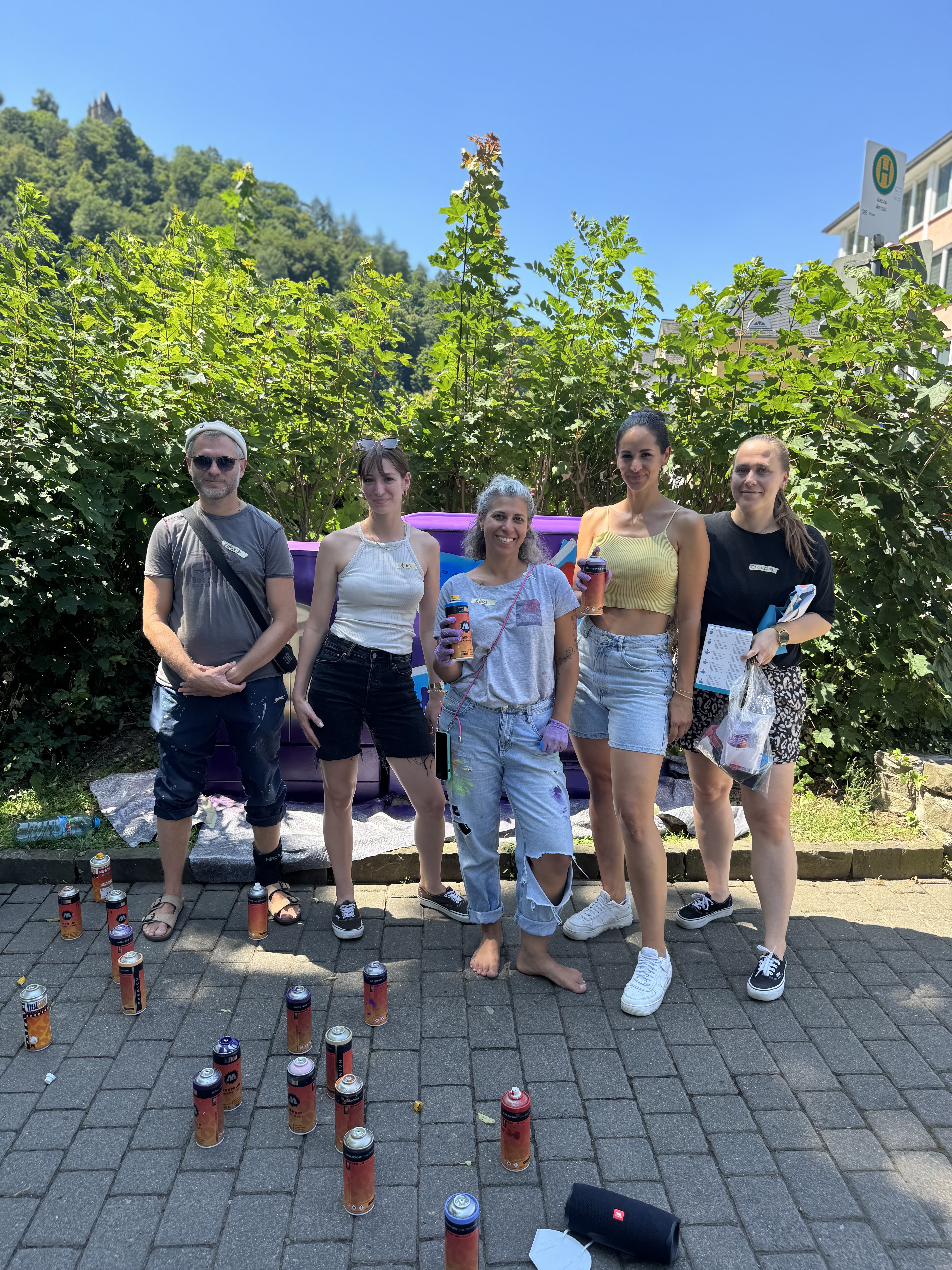 Ein herzliches Dankeschön gilt der Realschule Plus Bad Ems/Nassau, dem JUZ Bad Ems, dem Jugendtreff Nassau, den beteiligten Künstler:innen sowie der Nassauischen Sparkasse und allen Spender:innen über GoFundMe, die das Projekt mit ermöglicht haben. Durch diese Zusammenarbeit wurde nicht nur das Stadtbild verschönert, sondern jungen Menschen eine wertvolle Erfahrung von Mitgestaltung und Gemeinschaft ermöglicht.