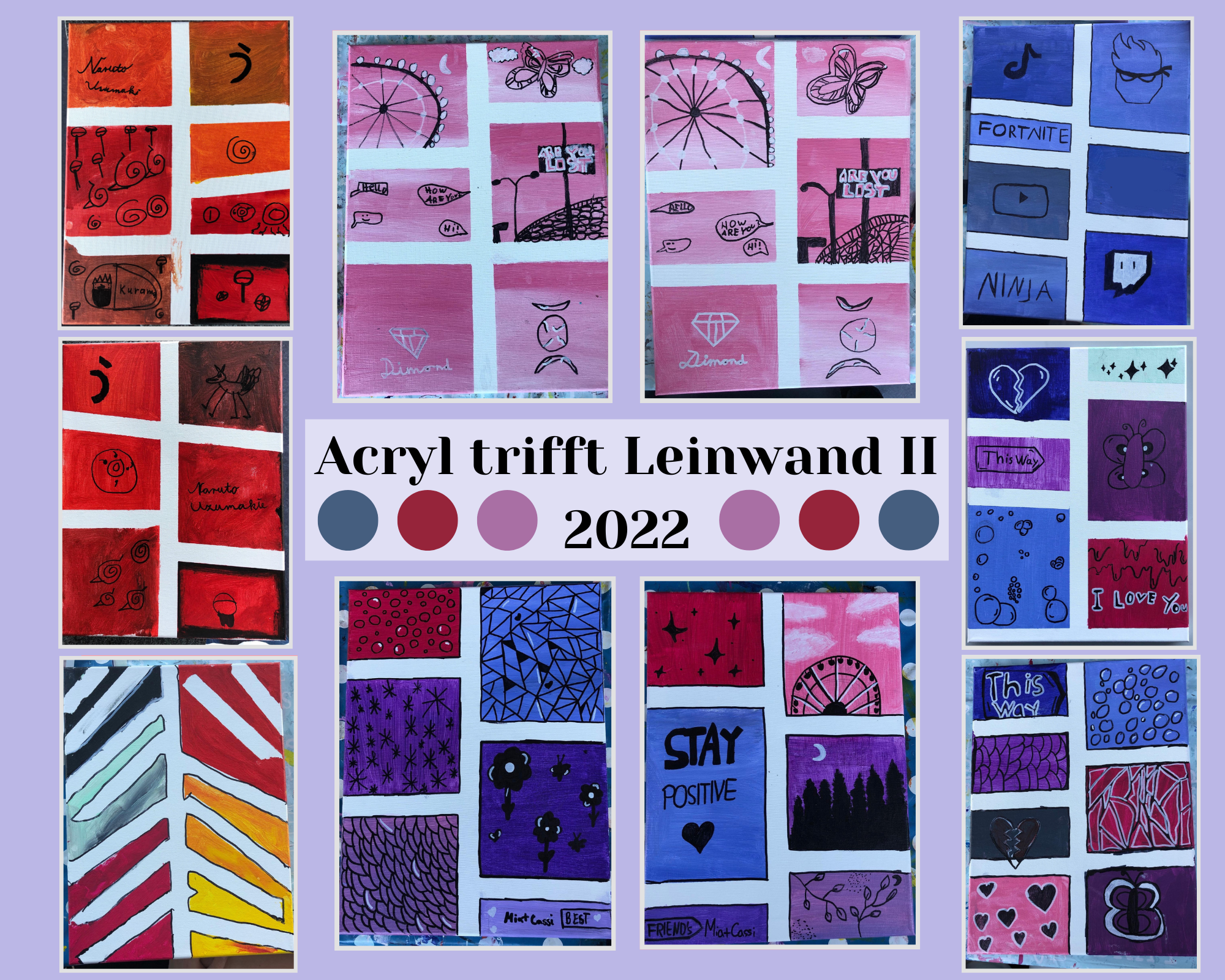 Am darauffolgenden Tag wurde es wieder bunt. Dieses Mal allerdings mit Acrylfarbe. Elisa Di Canio vom „Atelier Kunstglück“ leitete die Kinder beim Bemalen von Leinwänden an und brachte unterschiedliche Motive und Techniken mit. So konnte sich jedes Kind individuell kreativ austoben. Die fertigen Kunstwerke sorgten für Begeisterung!