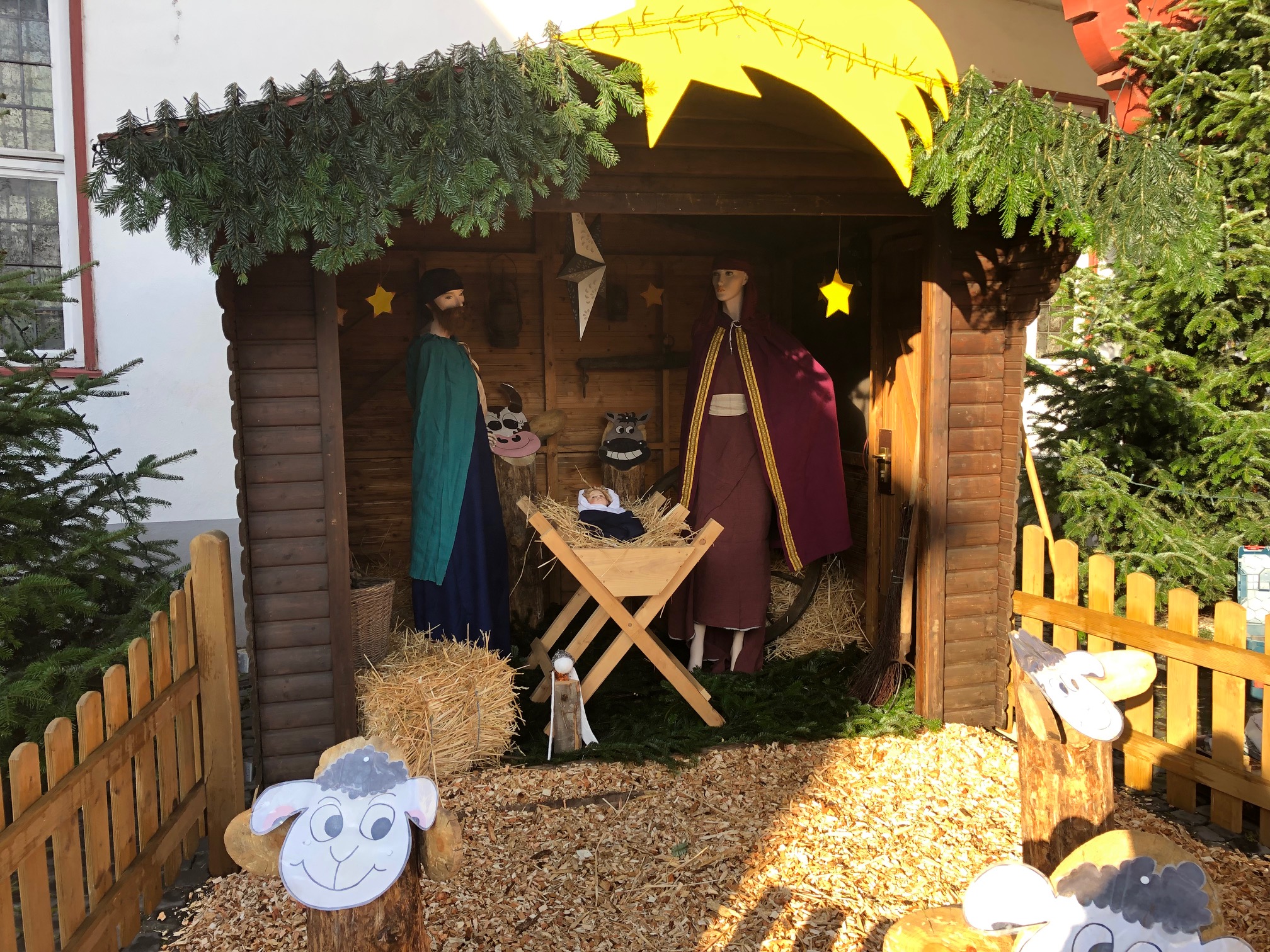 Maria und Josef lassen Weihnachtskrippe vor dem Nassauer Rathaus in neuem Glanz erstrahlen