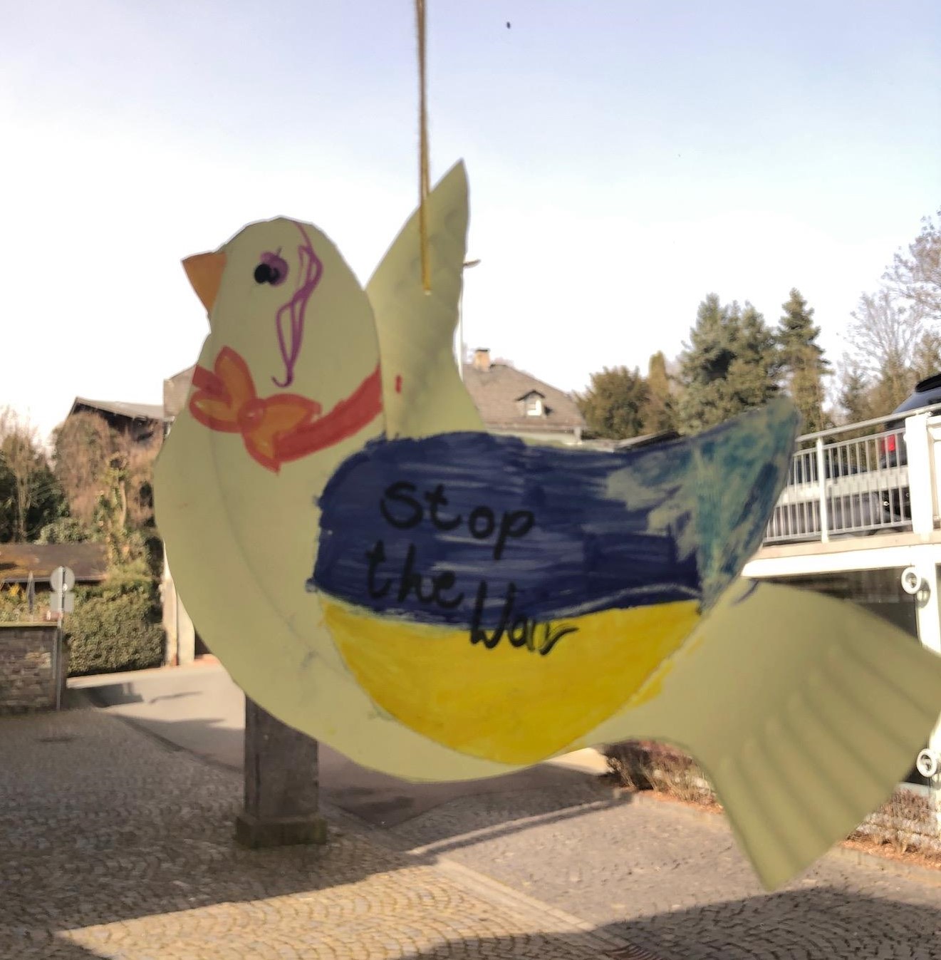 Deutlich ist, dass sich die Kinder ein Ende des Krieges herbeiwünschen und Solidarität mit der Ukraine zeigen. Mit selbst gebastelten Friedenstauben, die gut sichtbar in den Fenstern aufgehangen wurden, setzen die Kinder und der Jugendtreff ein klares Zeichen gegen Krieg und für Frieden.