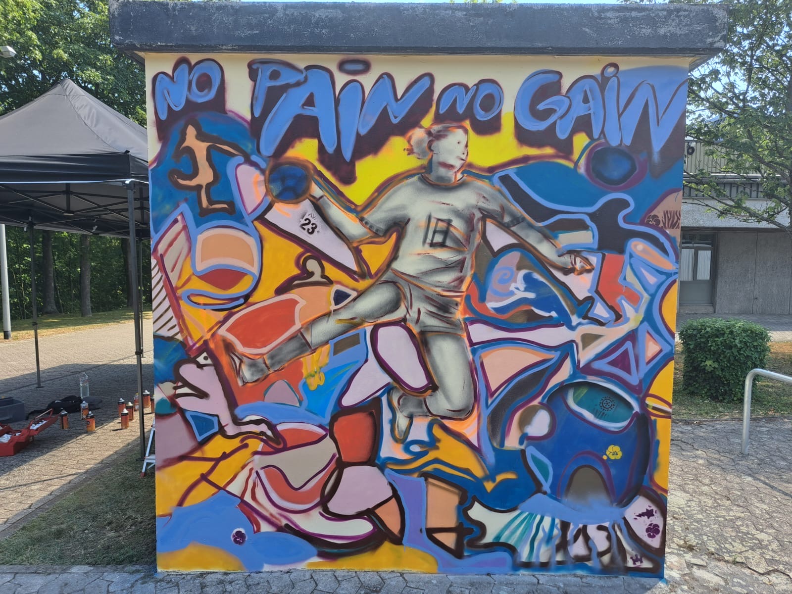 Die Kinder und Jugendlichen konnten eigene Ideen einbringen, mitentscheiden und selbst zur Sprühdose greifen. Dabei lernten sie nicht nur künstlerische Techniken, sondern entwickelten wichtige Kompetenzen wie Teamarbeit, Konfliktlösung, kreativen Ausdruck und Selbstwirksamkeit. Gerade der spielerische und unvollkommene Stil von Jean-Michel Basquiat ermöglichte den Teilnehmenden ein niedrigschwelliges Erfolgserlebnis – ganz unabhängig von Vorerfahrungen.
